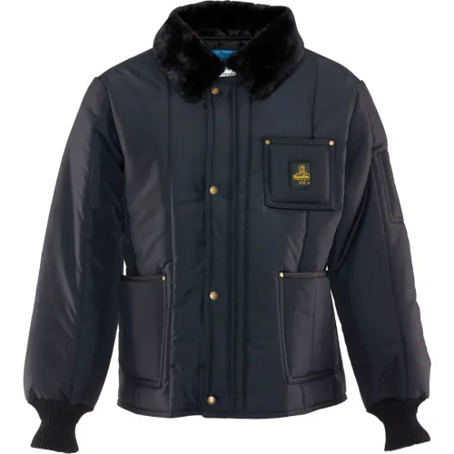 The RefrigiWear Men's Iron-Tuff Polar Jacket is what you need to work in extreme winter climates. Whether you're outdoors in negative temperatures or dealing with industrial freezer machines, this cold-weather heavy jacket can provide you with protection and warmth in any frigid environment. The 400-denier nylon outer shell makes the material tear- and abrasion-resistant, while the soft fleece collar keeps your headspace comfortable. There are included snaps for the 0081 hood for added head protection. Each arctic winter jacket is insulated and lined with 11.25 ounces of RefrigiFill polyester insulation for maximum heat-trapping capabilities.<BR><BR>Our insulated jackets for men fit a range of sizes, from small to extra large. The durable bound seams and the elastic back band keep drafts out, and a water-repellent, wind-tight finish protects you from rain, snow, and ice. Brass rivets reinforce the stress points anywhere on the jacket, while the 2 oversized front pockets provide extra warmth for your hands. There's also a 2-stall pencil pocket on the left sleeve for additional storage. Heavy-duty knit cuffs and reinforcement patches keep the edges of this freezer jacket intact—no matter the conditions. With so much protective and tough coverage, this men's winter coat helps you stay focused on your tasks.<BR><BR>Your time is precious, so it's important that you have all the right equipment to finish your jobs quickly and efficiently. Finding the right products shouldn’t be hard work. We’ve been with our customers in these cold, tough conditions and know how hard it can be. Not only do you have to do a job, but you have to do it at -20°F. Our gear is tougher than the conditions you face. Tackle any job—and we mean any job—knowing that RefrigiWear will keep you warm, safe, and focused on getting things done.<BR><BR>This polar jacket meets EN 342:2017 Protective Clothing - Protection Against Cold: 0.382(B) | 3 | X.