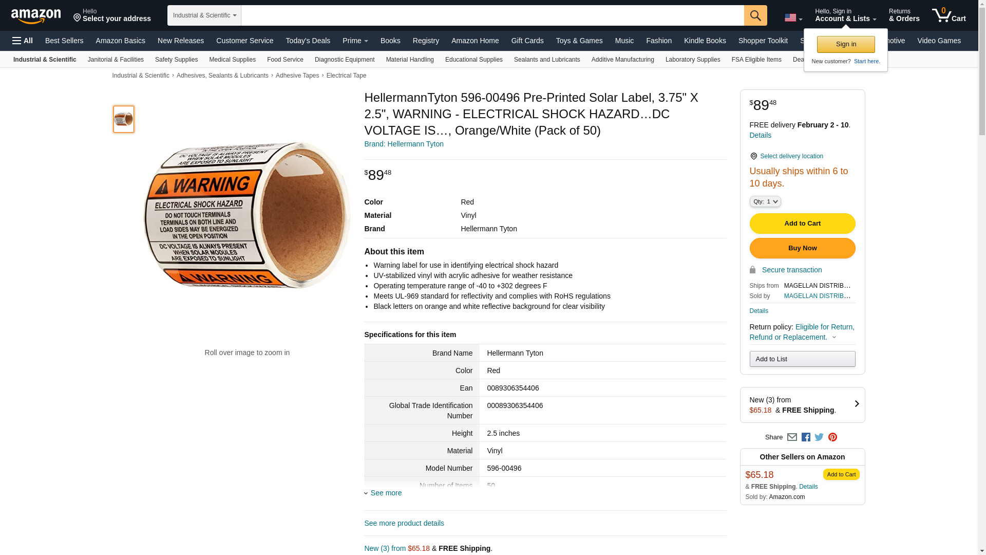 HellermannTyton 596-00496 Solar Label, Warning Electrical Shock Hazard