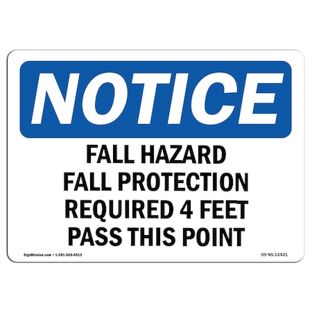 OSHA Notice Sign, Fall Hazard Fall Protection Required 4 Feet, 10in X 7in Rigid Plastic