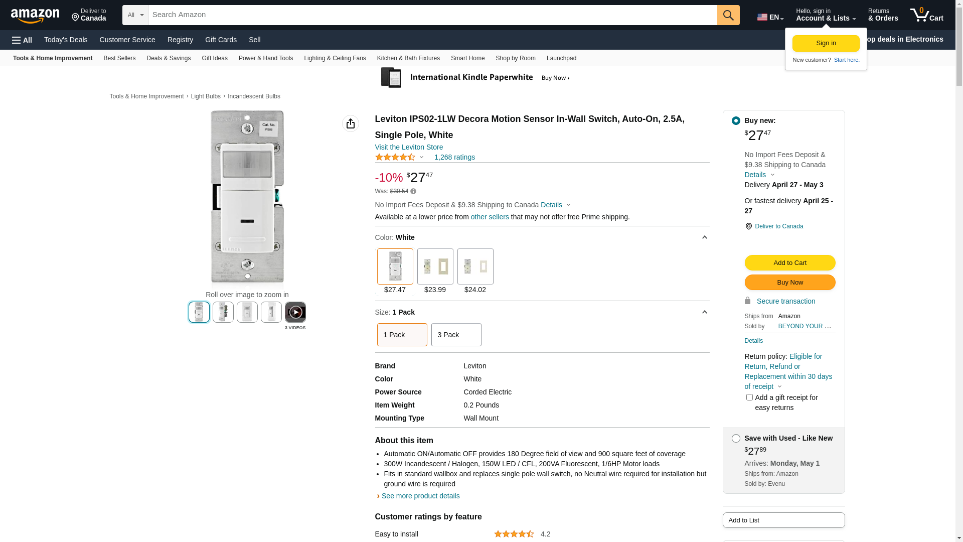 Leviton R02-IPS02-1LW White Single Pole Wide View Motion Activated Light Control
