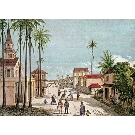 Stretched Canvas Art - French West Indies. /Nscene In A Town In The French West Indies. Color Engraving, 1880S. - Medium 18 x 24 inch Wall Art Decor Size.