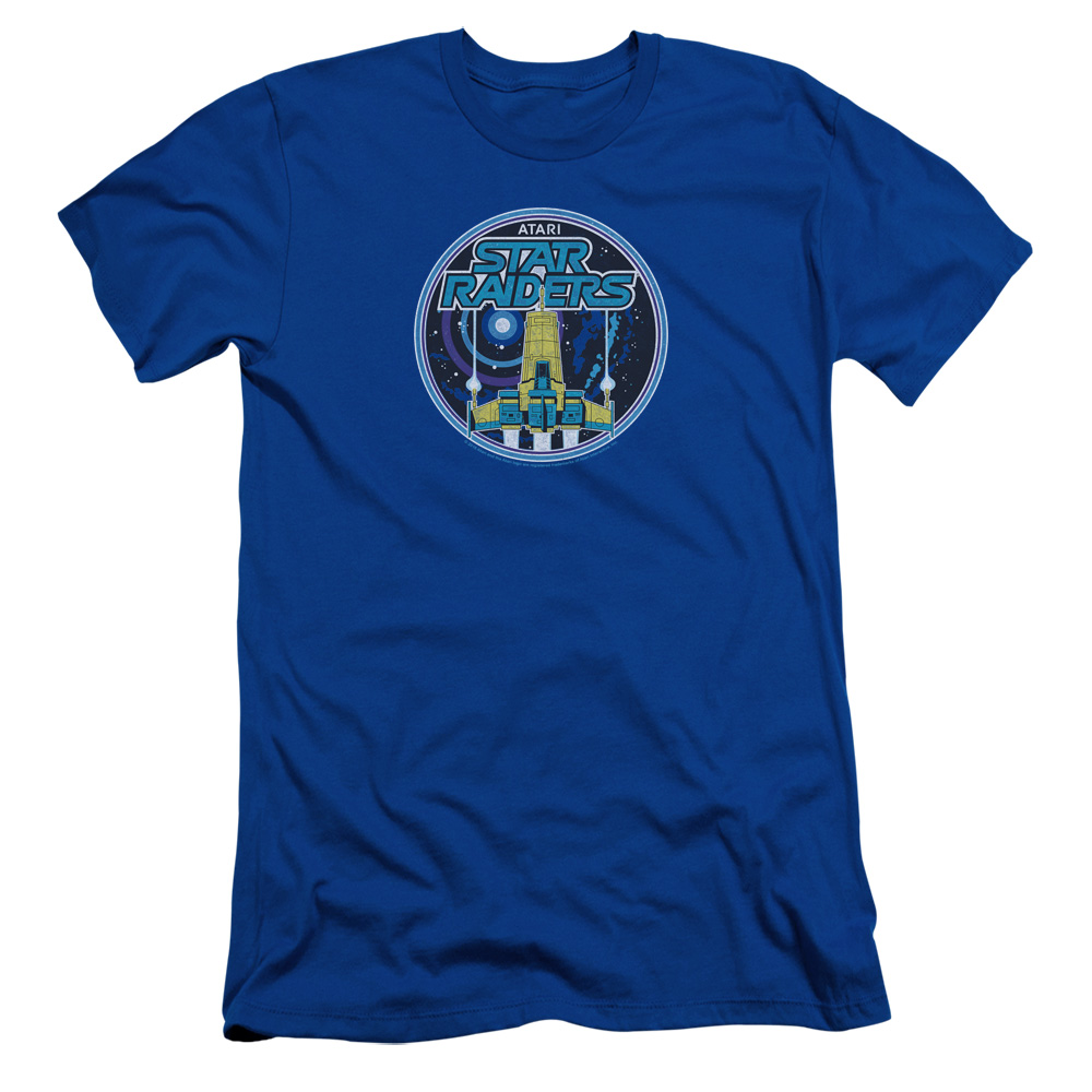 Trevco ATRI151-SF-3 Atari & Badge Adult Slim Fit Cotton Short Sleeve 30-1 T-Shirt, Royal Blue - Large