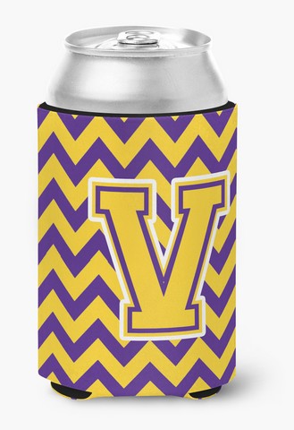 Carolines Treasures CJ1041-VCC Letter V Chevron Purple & Gold Can or Bottle Hugger, 0.25 x 4 x 5.5 in.