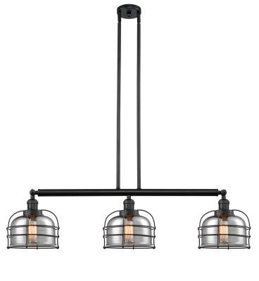 INNOVATIONS LIGHTING 213-BK-G73-CE FRANKLIN RESTORATION LARGE BELL CAGE 3 LIGHT 41 1/2 INCH PLATED SMOKE GLASS ISLAND...