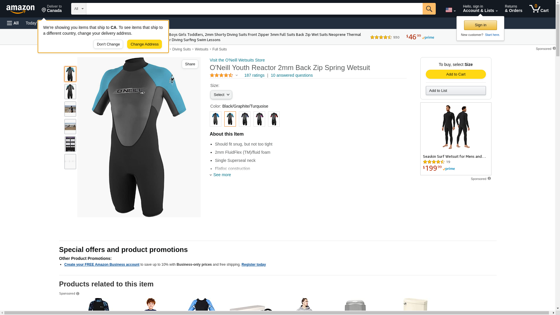 O'Neill Youth Reactor 2mm Back Zip Spring Wetsuit, Black/Graphite/Turquoise, 4
