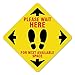 Please Wait Here Yellow Non-Slip Floor Graphic, 7in Vinyl Decal, 6PK