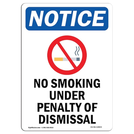 OSHA Notice Sign, No Smoking Under Penalty With Symbol, 10in X 7in Rigid Plastic