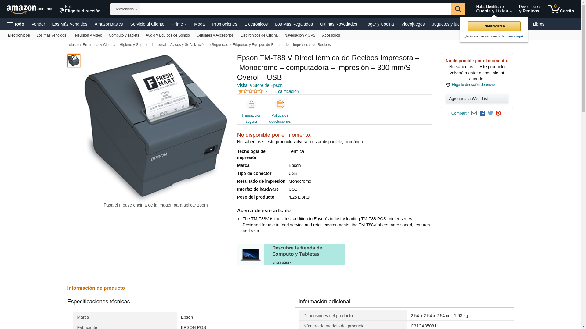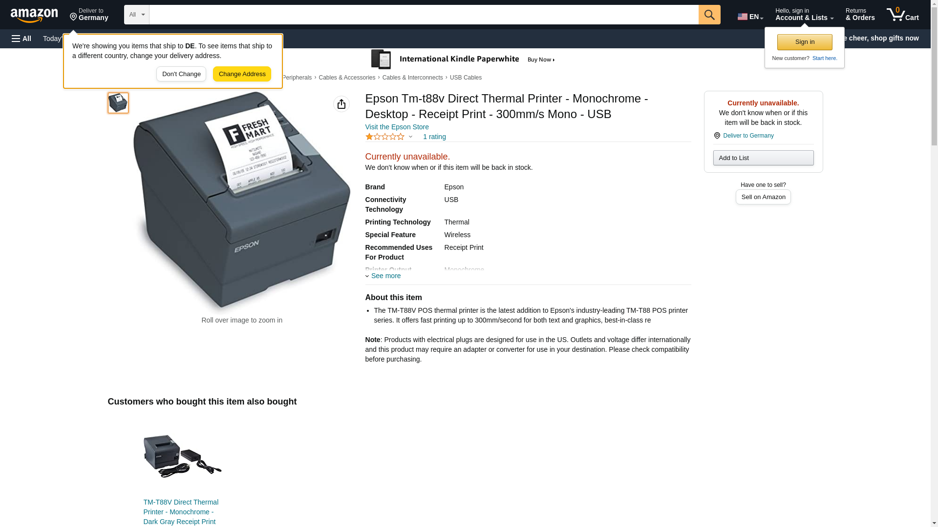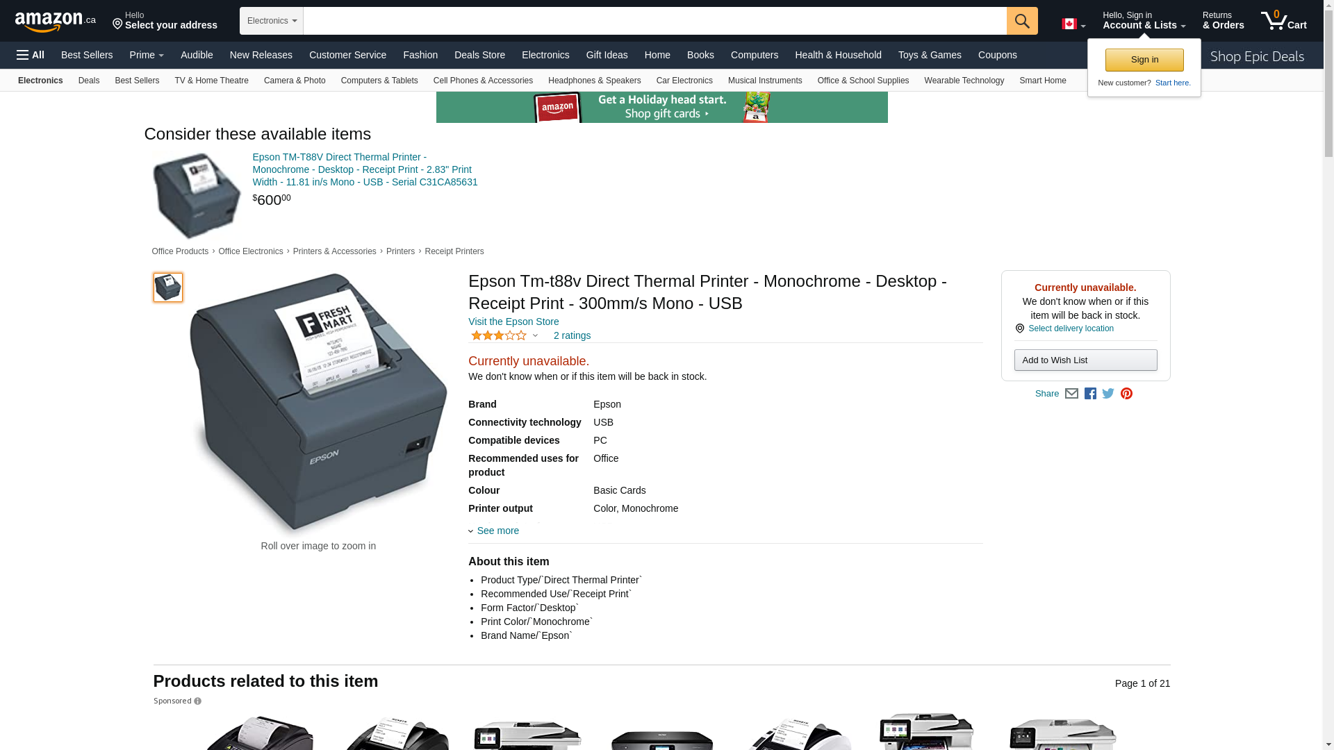 | Feature | On Tm T88v-Receipt Printer-Monochrome- Thermal Line- New Retail Not Eligible For |