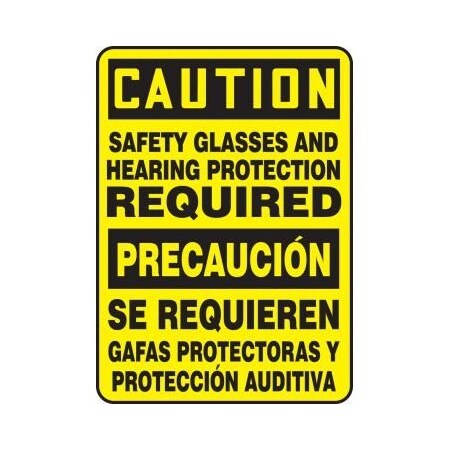 Accuform SBMPPE634XT Multi-Protection CAUTION SAFETY GLASSES & REQUIRED (BILINGUAL) 14"x10" Dura-Plstc