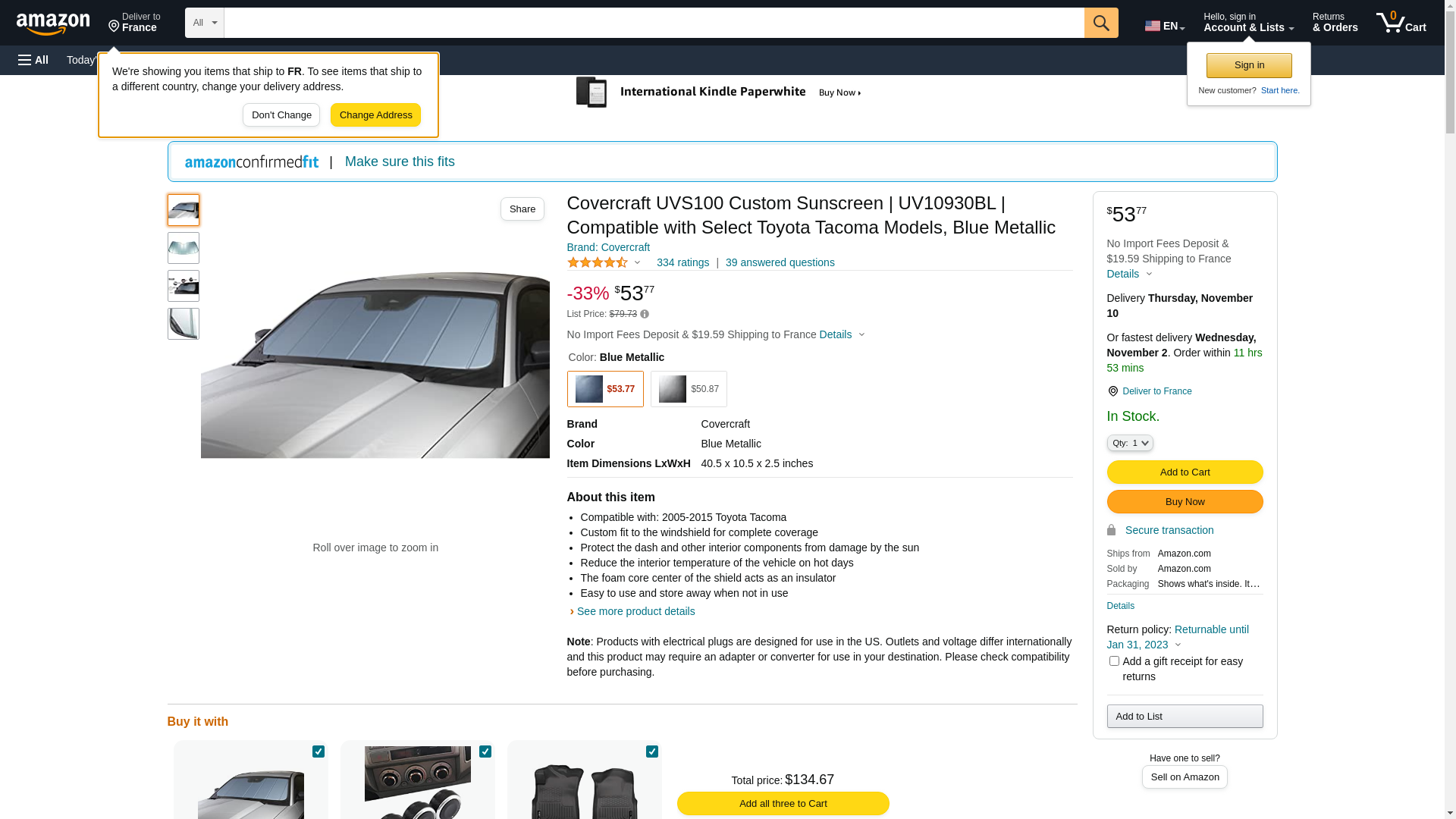 Covercraft UVS100 Custom Sunscreen | UV10930BL | Compatible with Select Toyota Tacoma Models, Blue Metallic