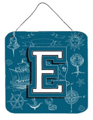 Caroline's Treasures CJ2014-EDS66 Letter E Sea Doodles Initial Alphabet Wall or Door Hanging Prints Aluminum Metal Sign Kitchen Wall Bar Bathroom Plaque Home Decor, 6x6, Multicolor