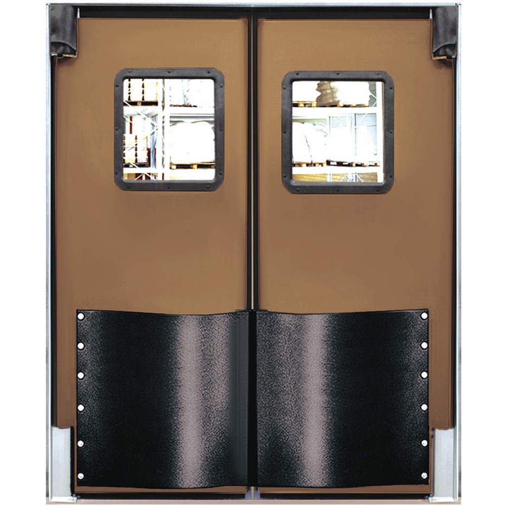 Swinging Door, Door Height 8 ft., Door Width 7 ft., Door Color Medium Brown, Swinging Door Material Polyethylene, Textured (Polyethylene Eggshell) Finish, Door Thickness 1-1/2 In., Number of Doors 2, Window Height 16 In., Window Width 16 In., Bumpers Included Yes, Door Seals Included Yes, Opening Height 8 ft., Opening Width 7 ft., Window Color Clear, Window Material Polycarbonate, Left and Right Jamb, Insulation Value 9.86, Standards NSF and USDA Door Thickness : 1 1/2 in Door Seals Included : Yes Window Height : 16 in Window Included : Yes Includes : 24 in Spring Bumpers, Mounting Hardware Window Material : Polycarbonate Door Width : 7 ft Swinging Door Core Material : Non-CFC Urethane Core Item : Swinging Door Standards : NSF and USDA Door Height : 8 ft Opening Height : 8 ft Door Color : Medium Brown Hinges : Left and Right Jamb Insulation Value : 9.86 Door Material : One Piece Molded Polyethylene Window Width : 16 in Number of Doors : 2 Window Color : Clear Bumpers Included : Yes Finish : Textured (Polyethylene Eggshell) Opening Width : 7 ft Swinging Door Material : Polyethylene Country of Origin (subject to change) : United States