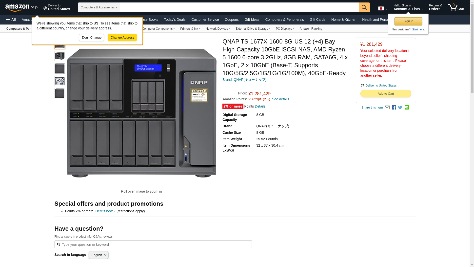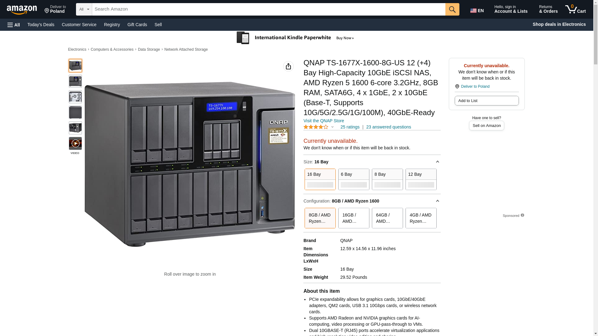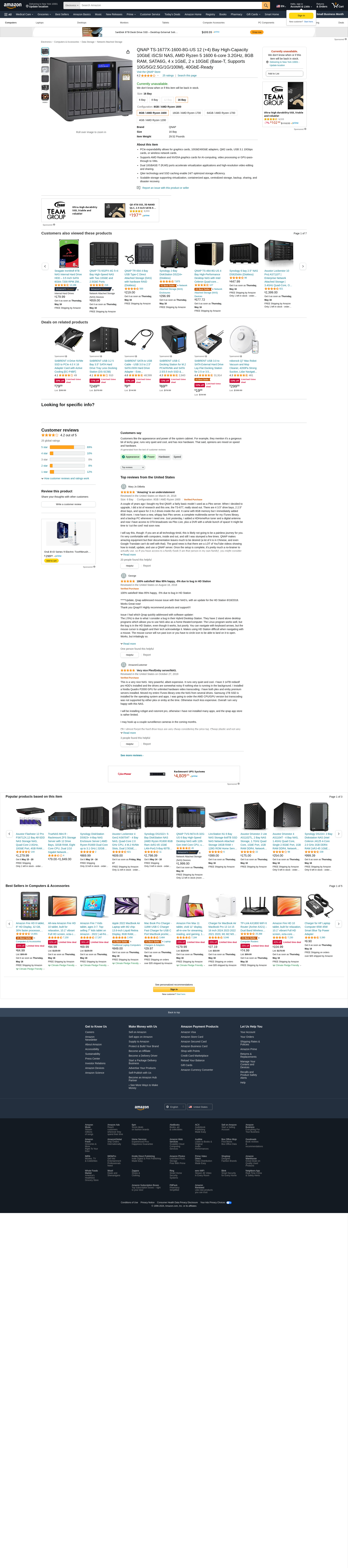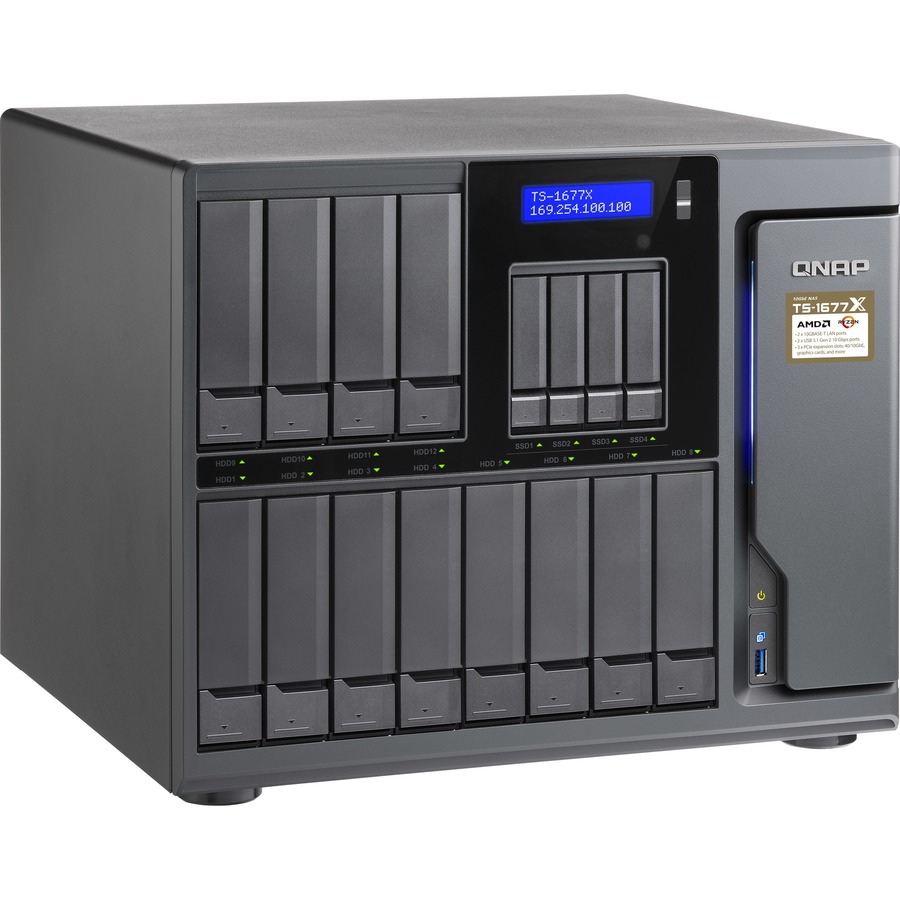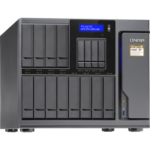QNAP TS-1677X-1600-8G-US 12 (+4) Bay High-Capacity 10GbE iSCSI NAS, AMD Ryzen 5 1600 6-core 3.2GHz, 8GB RAM, SATA6G, 4 x 1GbE, 2 x 10GbE (Base-T, Supports 10G/5G/2.5G/1G/100M), 40GbE-Ready