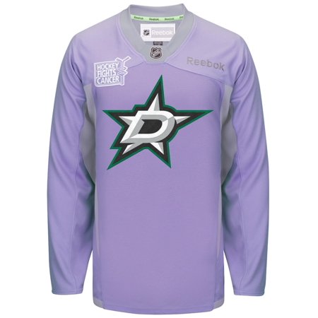 This NHL Hockey Fights Cancer practice jersey from Reebok is a must for the true fan. Features sewn on tackle twill team logo on chest, Reebok Elite Green neck tape, NHL shield at neck, embroidered Reebok logo, Hockey Fights Cancer official patch, limited production, and is officially licensed by the NHL.