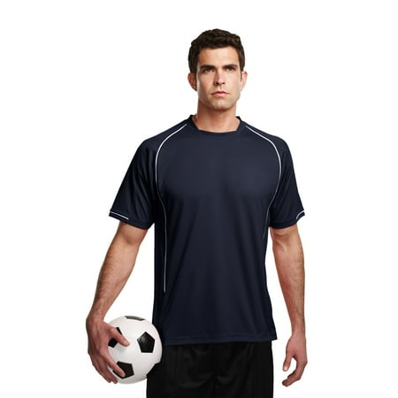 <ul> <li>Short sleeve creek neck with crossover collar tee</li> <li>100% polyester interlock 150gm/m2 w/moisture wicking treatment</li> </ul>