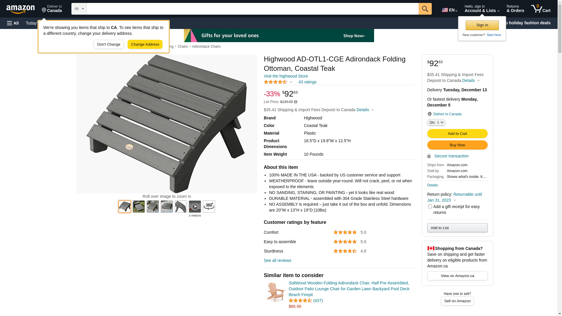 highwood? Hamilton Folding Adirondack Ottoman - Coastal Teak