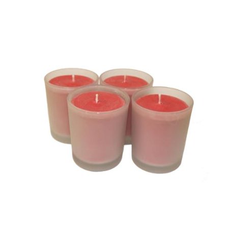 Each 3-ounce votive in this stylish four piece set is hand-poured into a reusable, frosted votive holder using only 100-percent all natural Soy wax, cotton wick and highly scented in your selected fragrance, chosen specifically for use in Soy. This stylish votive set will not only complement any decor but is environmentally friendly as well. <br /> <br /> <ul> <li>State: Maryland</li> <li>Burn time: Up to 15 hours each</li> <li>Package includes: Four (4) 3-ounce Votive Candles</li> <li>Setting: Indoor</li> <li>Type: Votive Candle</li> <li>Color options: Red</li> <li>Materials: All natural soy wax, lead free cotton wick, premium fragrance, red dye, frosted votive holder.</li> <li>Dimensions (Each): 2.375 inches high x 2 inches wide </li> </ul> <br /> <b>This product is part of our 'Main Street Revolution' - a partnership between Overstock.com and small businesses around the USA.</b> <br /> <br /> <i><a href="http://www.overstock.com/mainstreet">What is the Main Street Revolution.</a></i> <br /> <br />Cove House Candle Co, LLC was inspired by my love of hand dipping candles as a child. This love of light and warmth was rekindled in 2012 when Cove House was launched using my daughter's artwork as my logo and product label. My products are proudly hand-poured in Maryland using only 100-percent all natural Soy wax, cotton wicks and premium fragrances. They will not only fill your home with their wonderful aroma but are enviromentally freindly as well. From my House to yours. <br /> <br /> <b>This custom-made item will ship within 1-10 business days.</b> <br /> <br /> <br /> <ul> <li>Type: Votive</li> <li>Material: Cotton, Glass, Soy, Wax</li> <li>States: Maryland</li> <li>Exact Color: Red</li> <li>Color: Red</li> </ul> <br /> <br />