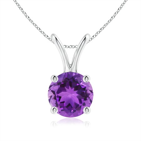 <ul> <li>V-Bale Round Amethyst Solitaire Pendant in 14K White Gold (6mm Amethyst)</li> <li>Approximate Carat Total Weight 0.8 ct</li> <li>18 inch 14K White Gold Chain Shipped Free With Pendant</li> <li>Amethyst are Heat treated for enhanced brilliance and lustre.</li> <li>Free Certificate of Authenticity and 30-Days Easy Returns.</li> </ul>