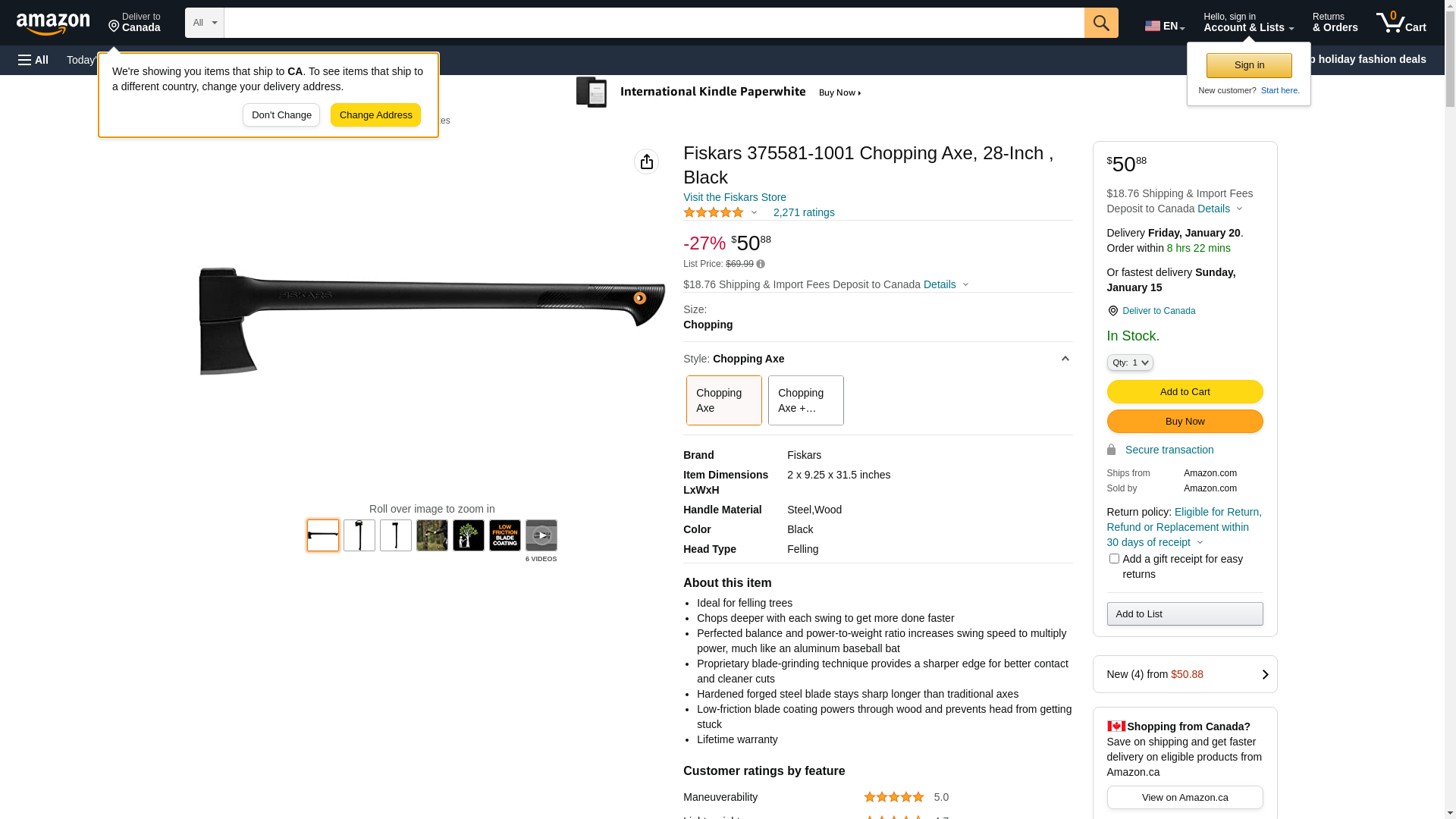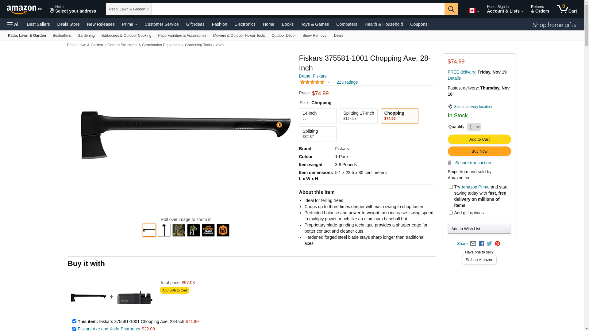 Fiskars 375581-1001 28" Steel Chopping Axe