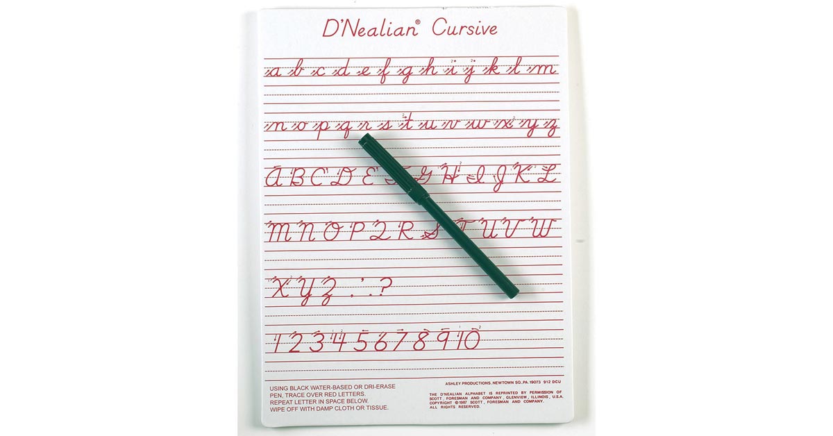 D'Nealian Cursive Write-On/Wipe-Off Board, 9" x 12" - ASH912DCU | Ashley Productions | Dry Erase Boards