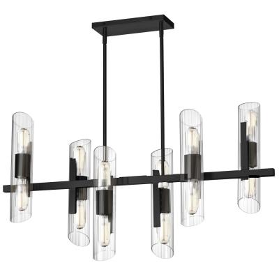12 Light Horizontal Matte Black Chandelier with Clear Fluted Glass