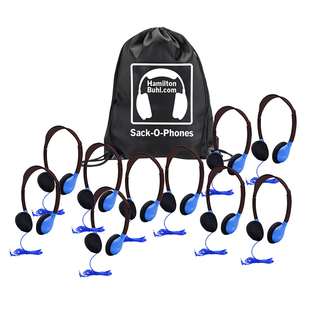 Sack-O-Phones, 10 Personal Headphones in a Carry Bag, Blue - HECSOPHA2BLU | Hamilton Electronics Vcom | Headphones
