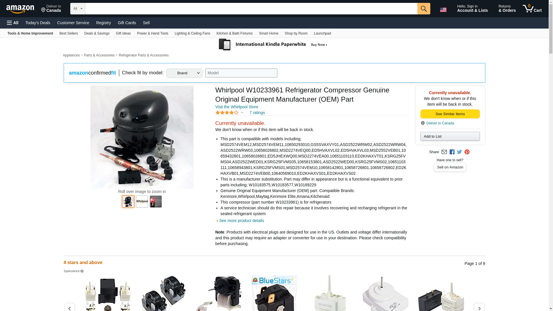 Compressor This listing is for each. Technical Specification Item Compressor Fits Brand Admiral, Amana, Caloric, Crosley, Estate, Hardwick, Inglis, Jenn-Air, Kenmore, KitchenAid, Magic Chef, Maytag, Roper, Whirlpool For Use With Mfr. Model Number ASD2522WEB00, ASD2522WEB01, ASD2522WED00, ASD2522WED01, ASD2522WES00, ASD2522WES01, ASD2522WEW00, ASD2522WEW01, ASD2522WRB02, ASD2522WRB03, ASD2522WRB04