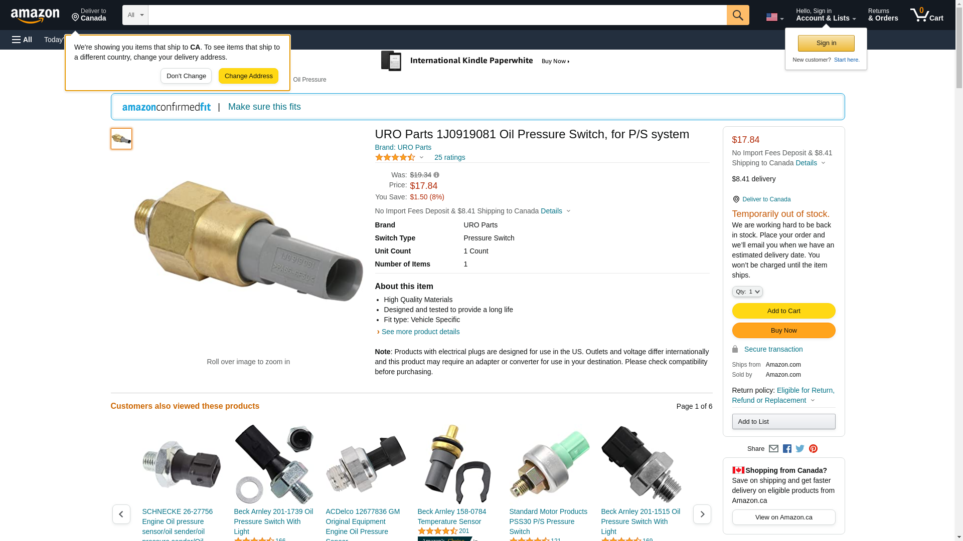 URO Parts 1J0919081 Oil Pressure Switch, for P/S system