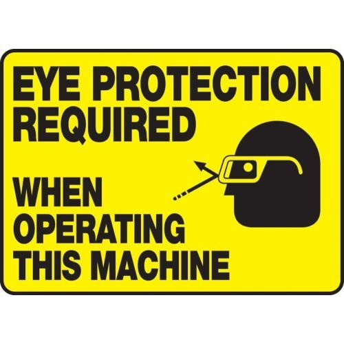 Accu-Shield Sign: "Eye Protection Required When Operating This Machine" Sign size - 10" x 14" For unmatched reliability in performance under extreme conditions choose Accu-Shield ! Accu-Shield is the highest performance sign with an extra-long 15-year outdoor durability guarantee. The non-glare poly-carbonate plastic is specially formulated to resist color change, chemicals, corrosion, and abrasions and will continue to look good for years while maintaining its superior strength. The two-ply, heavy-duty construction provides a rugged yet stylish appearance with a thick-edge design and industrial-strength backing. The legend and message are reverse-printed with UV resistant inks on the underside of the clear poly-carbonate. This sub-surface image is sealed with further protection on the backside by a permanently bonded, laminate poly sheet. A composite sign, nearly 1/4" thick, will not crack, chip, or become brittle under extreme environments indoors and outdoors with service temperature range for poly-carbonate at -60 to 260 F. and under layer surface -40 to 176 F. >> MPPE501XP by Accuform
