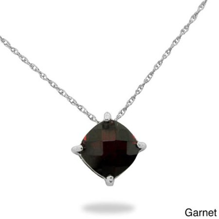 Gioelli Brand. This radiant pendant features a sparkling cushion-cut gemstone composed in a beautiful basket setting. Crafted of fine polished sterling silver, the elegant lavaliere is suspended from an 18-inch cable chain that secures with a spring ring clasp. <br /> <br /> <ul> <li>Style: Necklace</li> <li>Gemstone colors: Blue, purple, orange, red, green, rainbow</li> <li>Gemstone shapes: Cushion</li> <li>One basket-set cushion-cut gemstones each measures 8 mm</li> <li>Gemstone weight: 2.04 carat</li> <li>Total gemstone weight: 2.04 carats</li> <li>Metal: Sterling silver</li> <li>Finish: High polish</li> <li>Chain: Cable</li> <li>Chain length: 18 inches</li> <li>Clasp: Spring ring</li> <li>Metal weight: 2 grams</li> <li>Pendant dimensions: 8 mm wide x 8 mm long</li> <li>Necklace dimensions: 1 mm wide x 18 inches long</li> </ul> <br /> <b><i>All weights and measurements are approximate and may vary slightly from the listed information. Treatment code N (garnet, quartz), and E (amethyst, blue topaz, citrine). See <a href="http://www.overstock.com/2200/static.html" target="_blank"><span class="links">Treatment Guide</span></a> for further information.</i></b> <br />