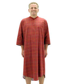 Silverts 501201904 Mens Flannel Open Back Adaptive Hospital Patient Gowns with Back Snap - Maroon Grid, Large