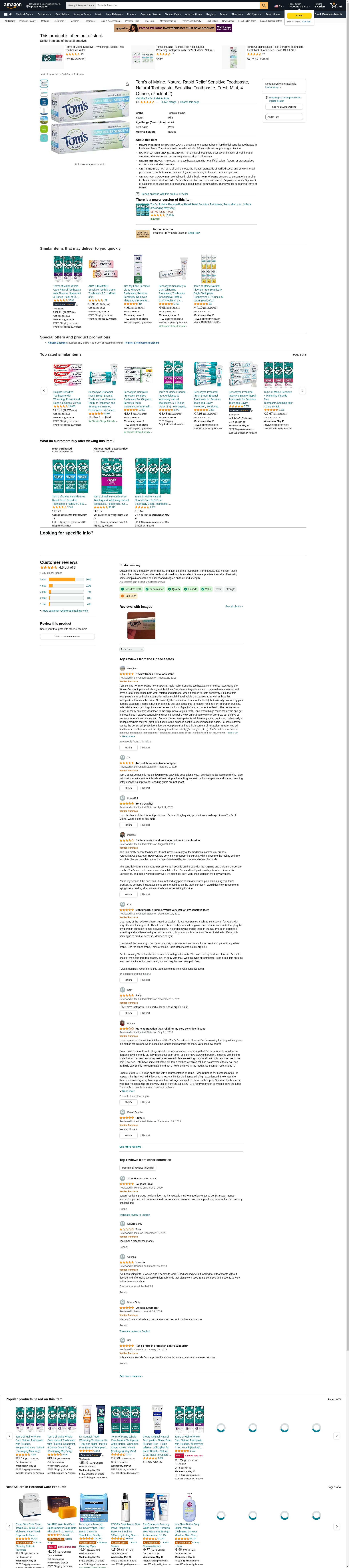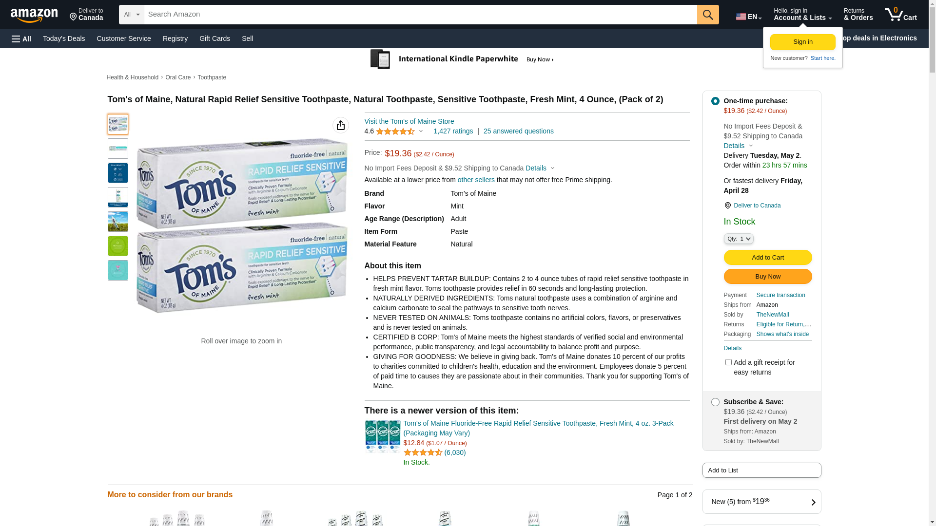 Amazon.com : Tom's of Maine, Natural Rapid Relief Sensitive Toothpaste, Natural Toothpaste, Sensitive Toothpaste, Fresh Mint, 4 Ounce, (Pack of 2) : Health & Household