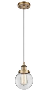 INNOVATIONS LIGHTING 916-1P-BB-G202-6 BALLSTON BEACON 1 LIGHT 6 INCH CLEAR GLASS MINI PENDANT, BRUSHED BRASS,...