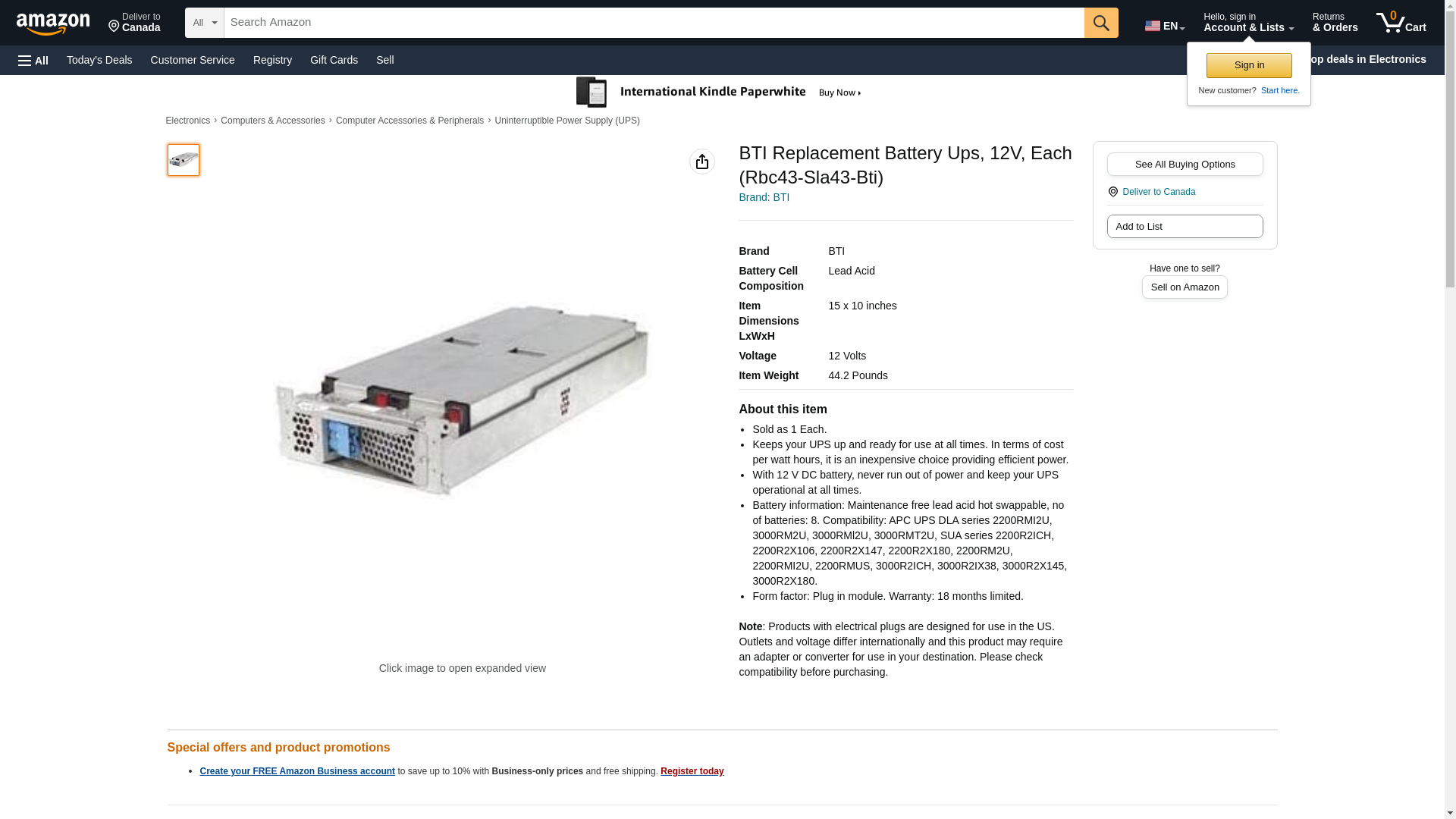 BTI- Battery Tech. RBC43-SLA43-BTI APC Replacement Battery