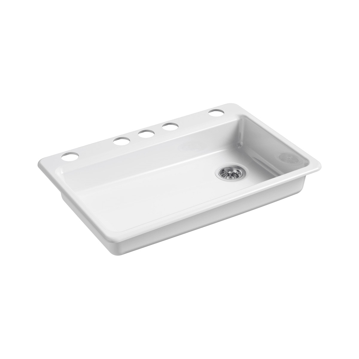 KOHLER K-8689-5U-0 Riverby Kitchen Sink, 33" x 22" x 5-7/8", White