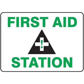 Accuform Signs 7" X 10" Green, Black And White Plastic Value Fire And First Aid Sign With Pictogram "First Aid Station"