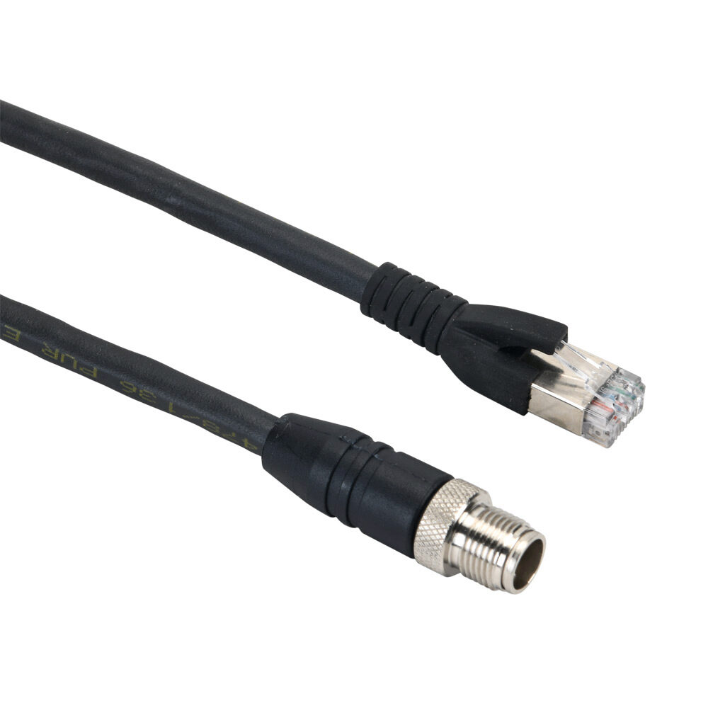 CAB-ETH-X-M01 - Datalogic cable, Ethernet, 8-pin M12 X-coded to RJ45, PVC jacket, 3.2ft/1m cable length.