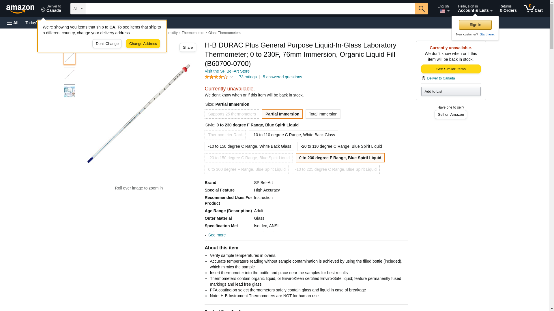 H-B DURAC Plus General Purpose Liquid-In-Glass Laboratory Thermometer; 0 to 230F, 76mm Immersion, Organic Liquid Fill (B60700-0700)