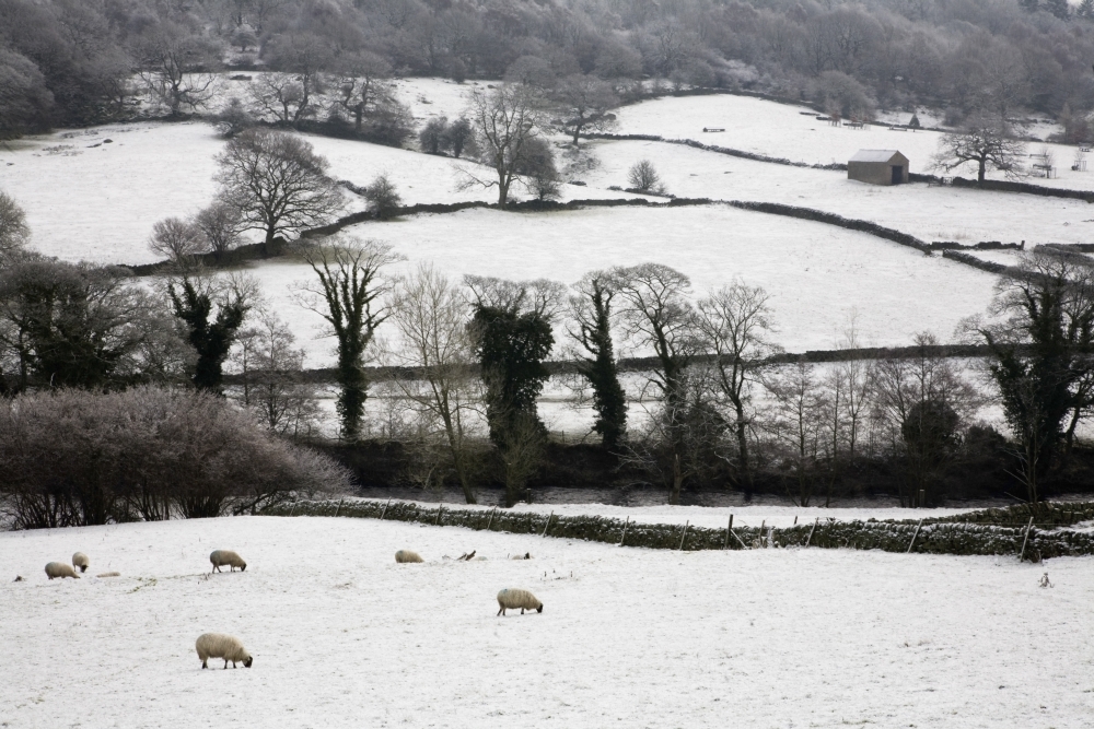 Posterazzi DPI1875271 Derwent Valley, Derbyshire, England - Sheep Grazing In The Snow In Peak District National
