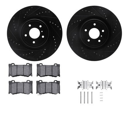 8512-68015, Rotors-Drilled and Slotted-Black w/ 5000 Advanced Brake Pads incl. Hardware, Zinc Coated