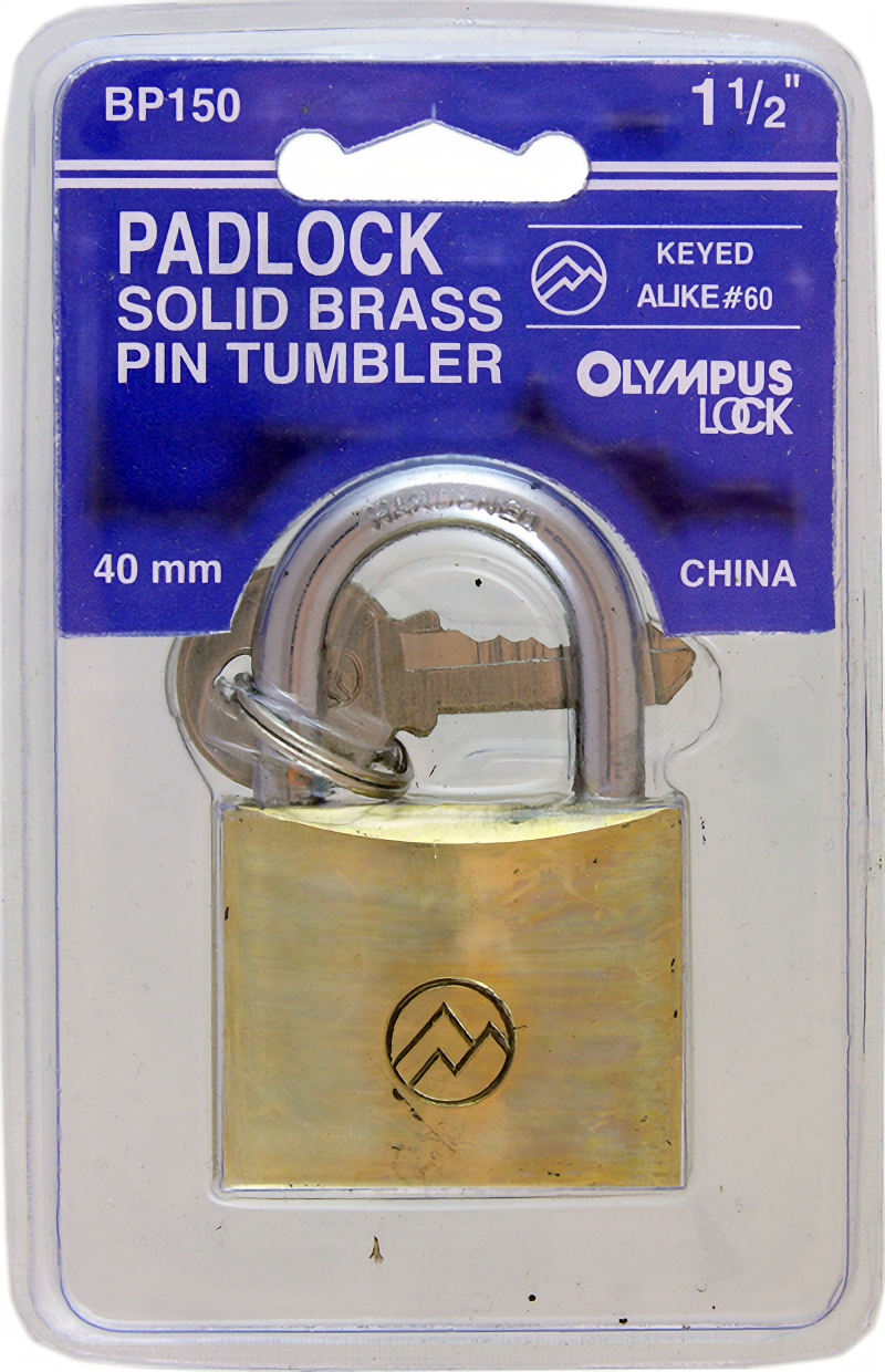 Olympus Lock BP150KA60 Padlock Brass 3 Keys | thebuilderssupply.com