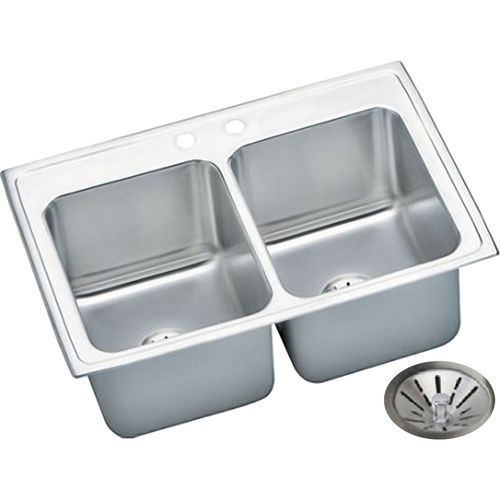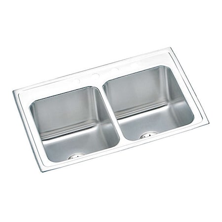 Elkay Lustertone DLR332210PD2 Equal Double Bowl Top Mount Stainless Steel Sink with Perfect Drain