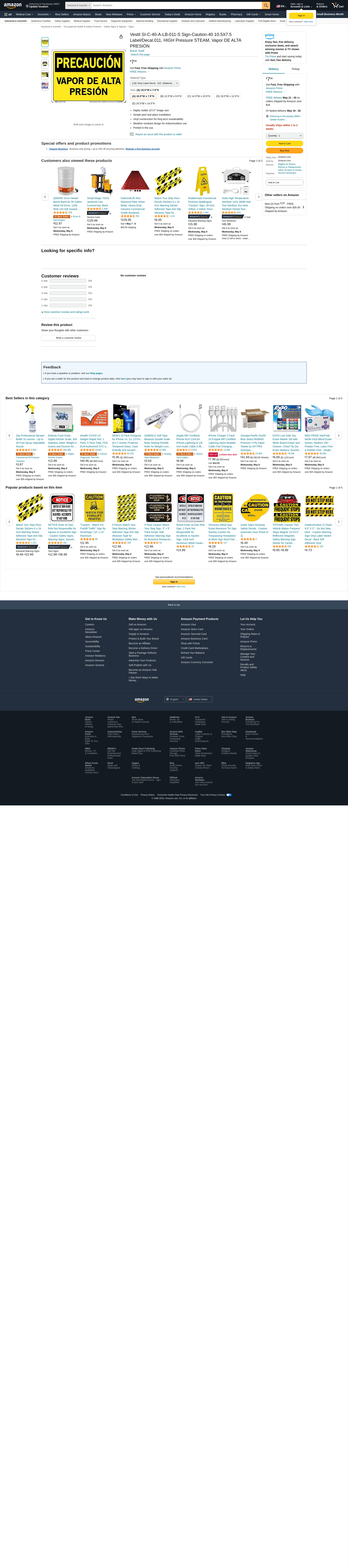 Vestil SI-C-40-A-LB-011-S Sign-Caution-40 10.5X7.5 Label/Decal.011, HIGH Pressure STEAM, Vapor DE ALTA PRESIÓN