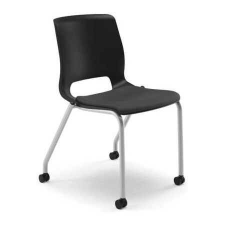 Part of Motivate seating by HON, these four-leg stacking chairs can transform any space into a dynamic environment. The Motivate collection includes tables, seating and presentation tools that work together seamlessly to provide a comprehensive solution perfectly suited for any collaborative environment. The way people work is constantly evolving, and Motivate provides the comfort, flexibility, technology and quality they need to get things done. Sculpted for incredible comfort, the plastic shell back and upholstered seat of these mobile stack chairs are contoured to conform to your body and move with your body to reduce pressure points. Weight capacity is 300 lb. One-piece propylene backrest can be easily wiped down. Dual-wheeled casters provide easy mobility. Shell color is Onyx; fabric color is black; and frame color is Platinum. Chairs with no arms stack up to six high on the floor to maximize your space. Efficient footprint and versatile design deliver comfort and adaptability.