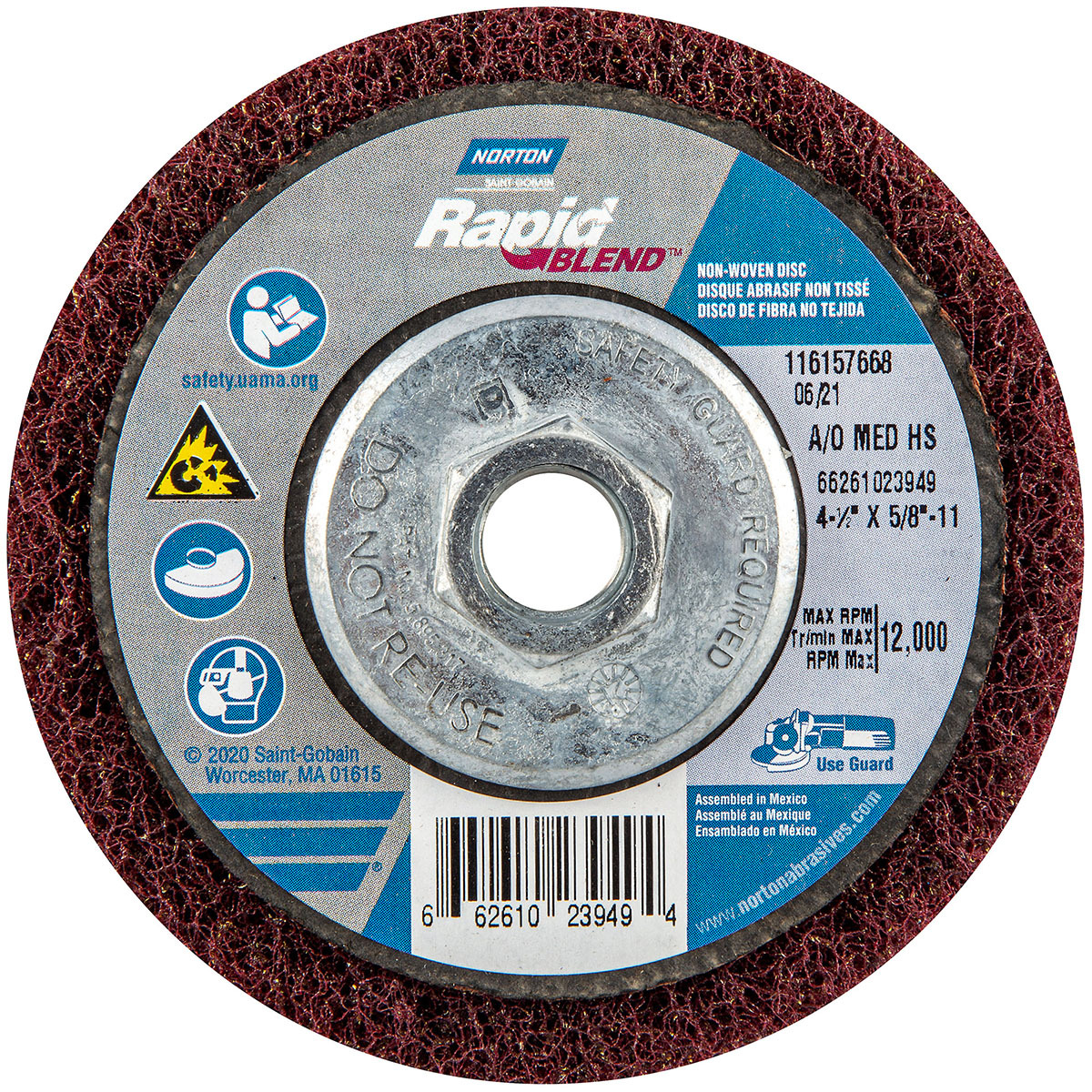 | Feature | Price For: Each Diameter: 4-1/2" Wheel Type: Blending and Finishing Item: Depressed Center Wheel Max. RPM: 12, 000 Thickness: 1/2" Application: For Deburring and Finishing Type: Type 27 Abrasive Material: Aluminum Oxide Arbor Size: 5/8"-11 Series: Rapid Prep Grit: 60-80 Grade: Medium Country of Origin (subject to change): Mexico |