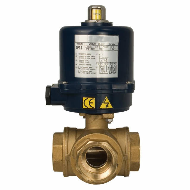 - Electrically Actuated 3-Way Brass Ball Valve