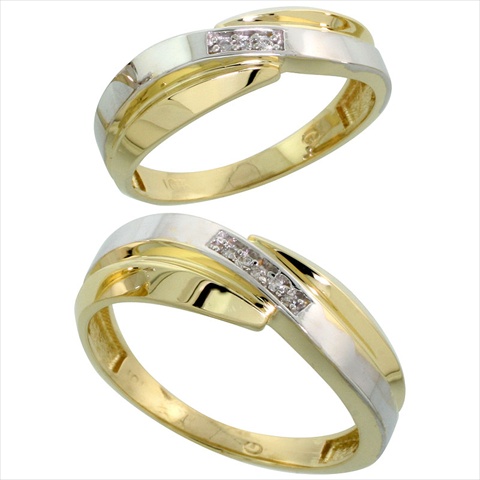 World Jewels 14k Gold .05 Carat Brilliant Cut Diamond Wedding Band Set, Ladies Size - 6.5