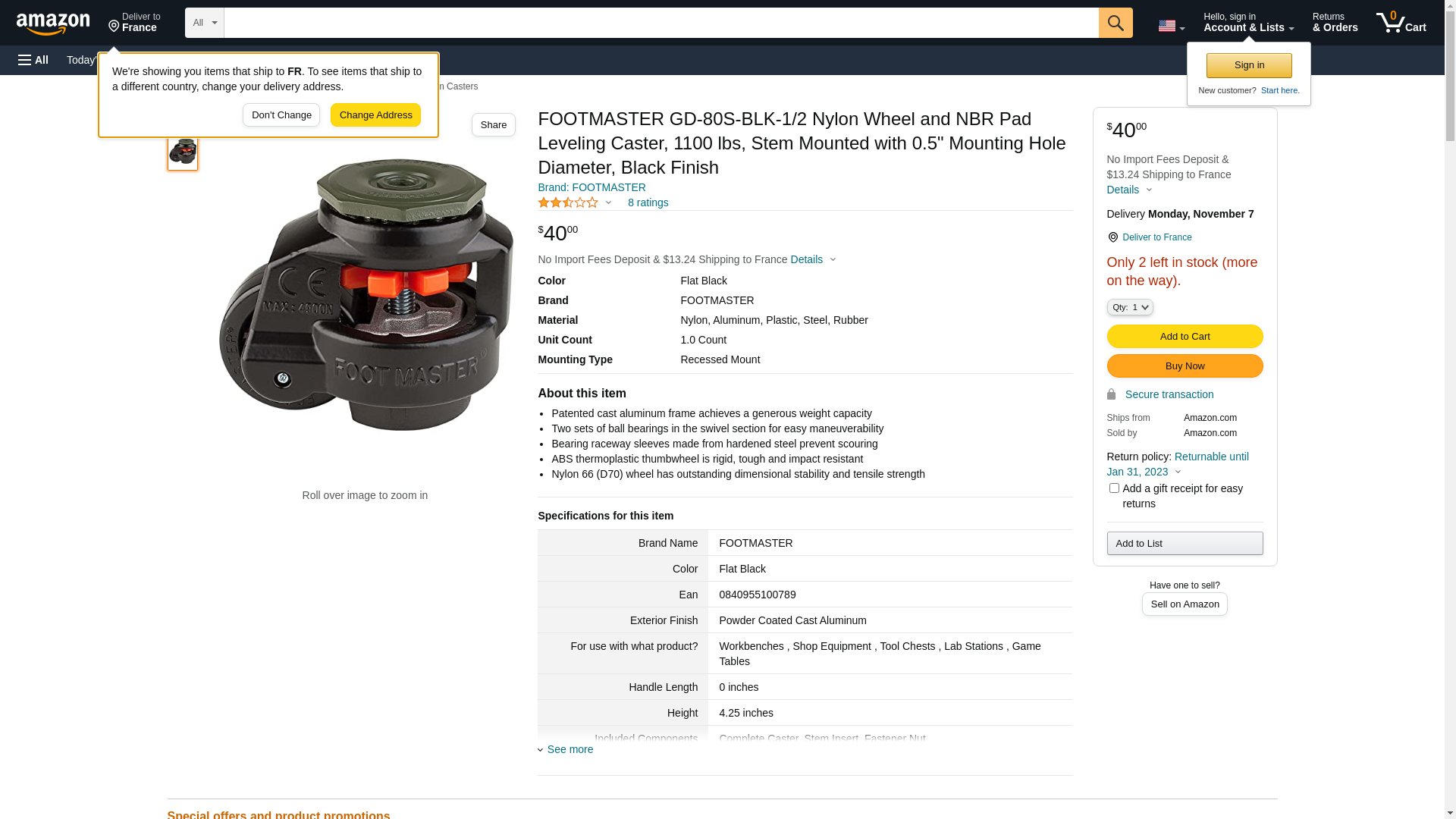 FOOTMASTER GD-80S-BLK-1/2 Nylon Wheel and NBR Pad Leveling Caster, 1100 lbs, Stem Mounted with 0.5" Mounting Hole Diameter, Black Finish