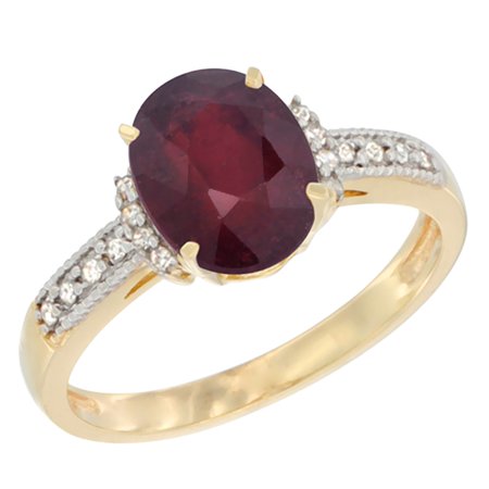 14K Yellow Gold Natural Ruby Ring Oval 9x7 mm Diamond Accent, sizes 5 - 10