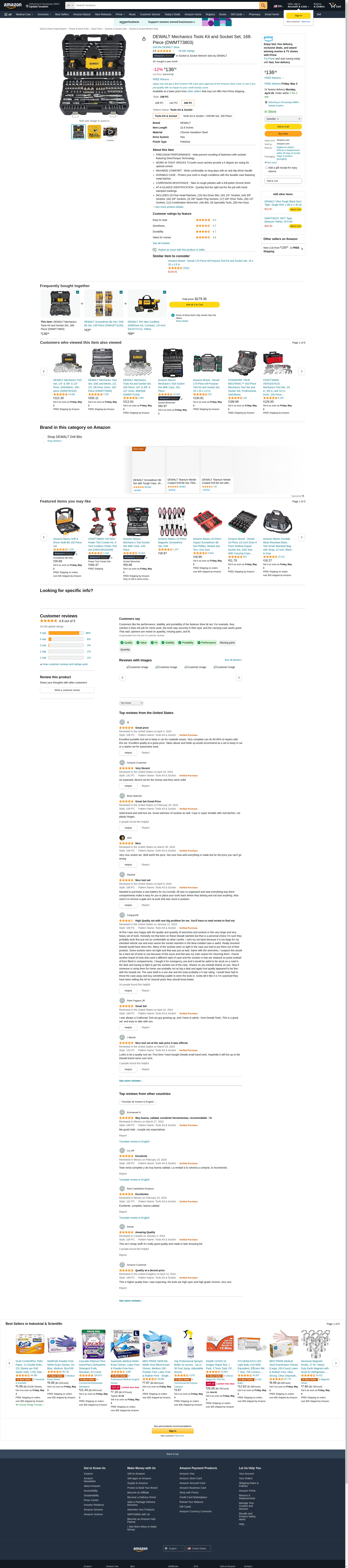 DEWALT Mechanics Tools Kit and Socket Set, 168-Piece (DWMT73803)